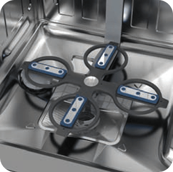 S štirimi satelitskimi škropilnimi rokami, ki s svojim dvosmernim gibanjem zagotavljajo temeljito čiščenje.
